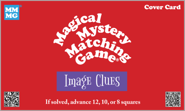 The Red cards are the “very challenging” clues. They can be used stand-alone to challenge yourself and friends… or they can be used with the MMMG Boardgame. Also available are the Green (“easy”) and Yellow (“challenging”) Image Card packs.